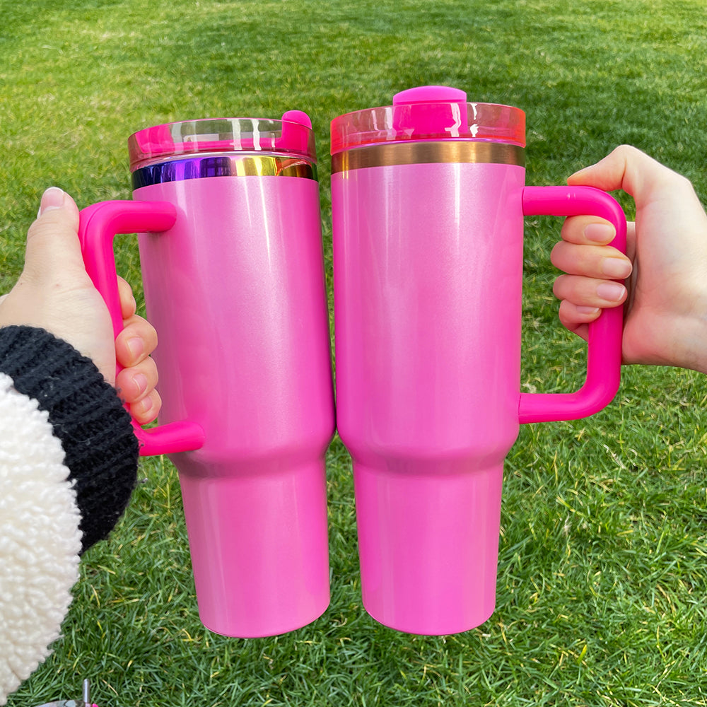 🌈✨40oz Rainbow Plate Winter Pink Spearkly Tumblers 20pcs for Laser Engraving_CNPNY